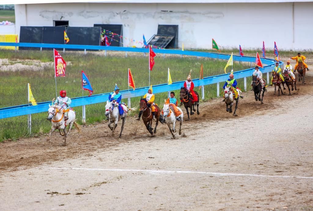 2023年8月11日,在觀眾席上拍攝的那曲恰青賽馬節(jié)速度賽馬比賽決賽現(xiàn)場。