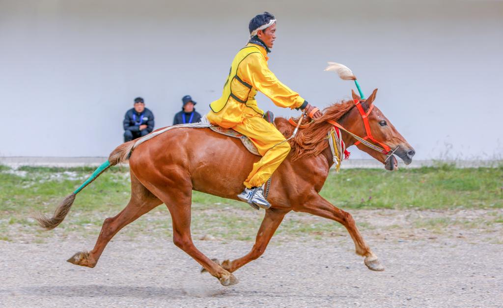2023年8月11日,一位選手在那曲恰青賽馬節(jié)走馬比賽決賽中。