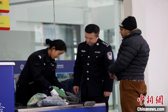 圖為聶拉木邊檢站民警對出境旅客的行李物品進行檢查。鄒興國 攝