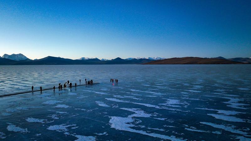 推瓦村位于山南市浪卡子縣打隆鎮(zhèn),海拔超過5000米,是世界海拔最高行政村之一,這個遺世獨(dú)立的小村莊,就坐落在風(fēng)景絕美的普莫雍措湖畔。普莫雍措被譽(yù)為“仙女之淚”“中國的貝加爾湖”,每年冬季,湖面結(jié)冰,冰面通透可見湖底,在陽光的照射下,呈現(xiàn)出動人心魄的藍(lán)冰。而此時,也是推瓦村羊群轉(zhuǎn)場的最佳時節(jié)。
