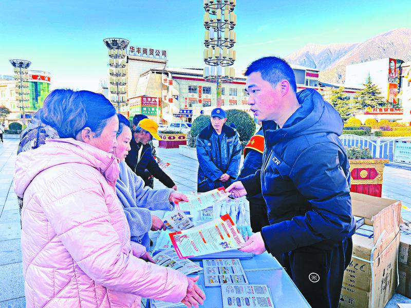 圖為人行林芝市分行工作人員在廈門廣場(chǎng)開展金融宣傳。記者 張猛 攝
