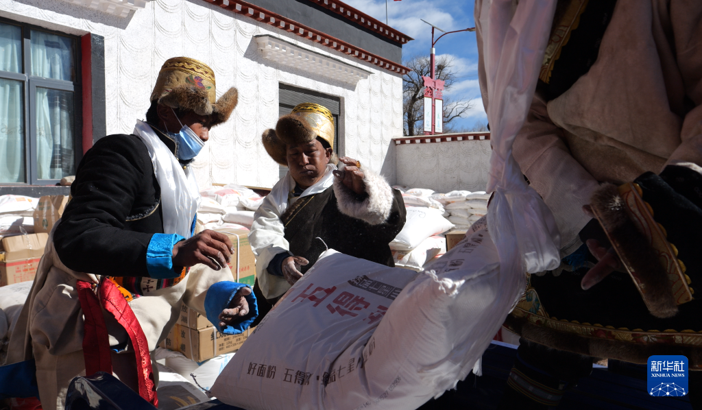 2月3日,日喀則市江孜縣紫金鄉(xiāng)努堆村在舉行分紅大會(huì)。新華社記者 洛卓嘉措 攝
