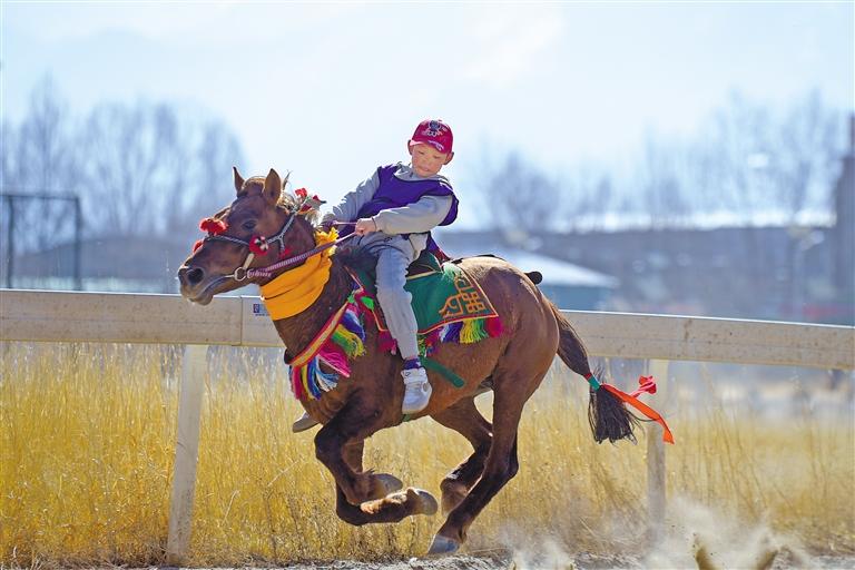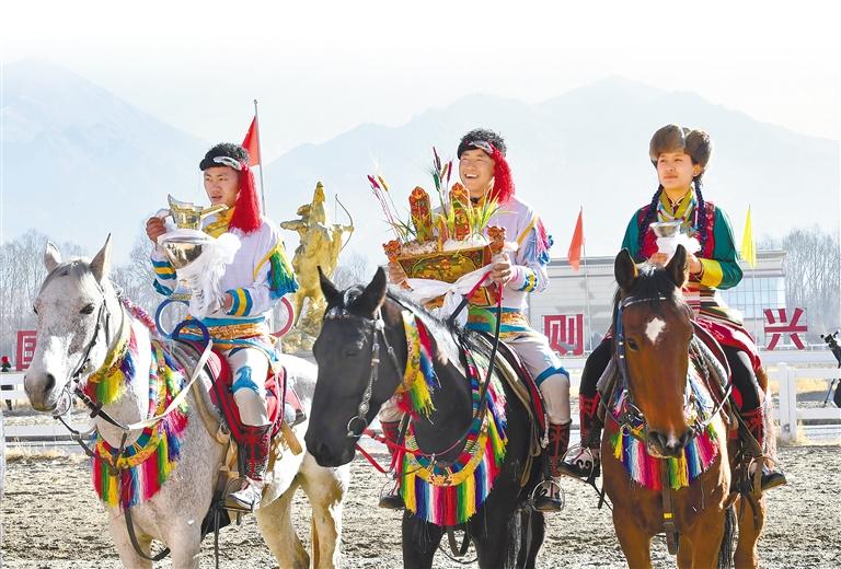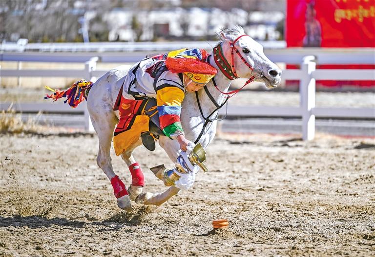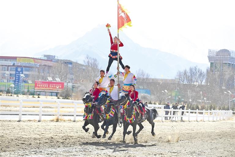 2月12日藏歷新年初三,主題為“體育大拜年,健康迎新春”的民族傳統(tǒng)馬術(shù)表演暨民族賽馬活動在拉薩賽馬場舉行。