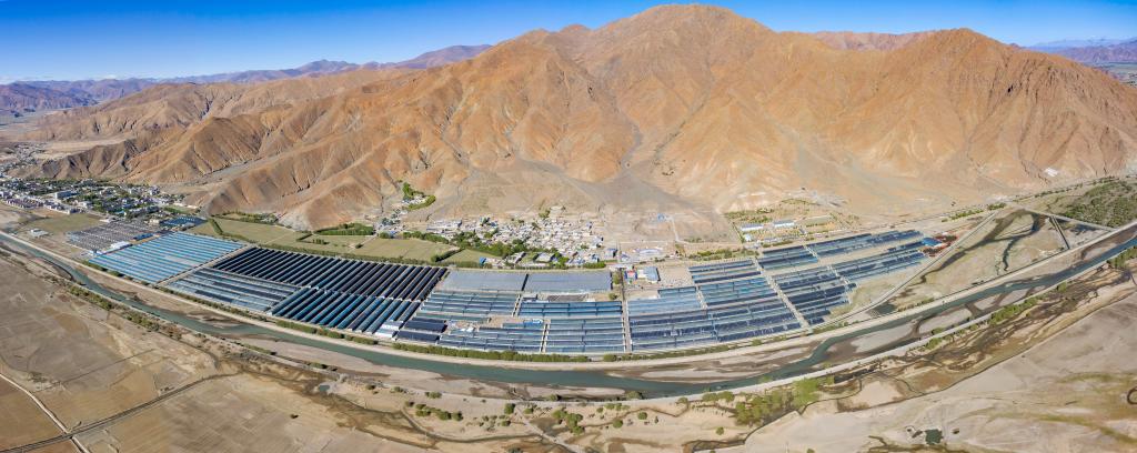白朗縣日喀則珠峰現代農業(yè)科技創(chuàng)新博覽園(無人機拼接照片,2023年5月28日攝)。新華社記者 姜帆 攝