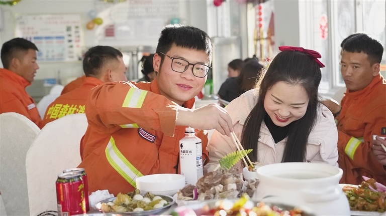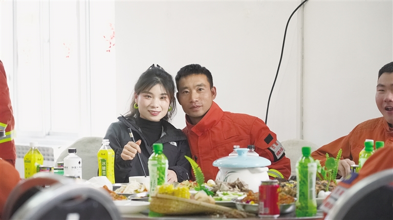 在大隊(duì)里,孫再藏與妻子一起包餃子、貼春聯(lián)、看春晚,和消防員們共同歡度佳節(jié)。除夕夜,孫再藏和妻子手挽著手,在操場(chǎng)上漫步。妻子抬頭看著丈夫,眼中充滿了驕傲和溫柔。她說(shuō):“你們過(guò)年還挺熱鬧的,好好站崗值班,家里不用擔(dān)心,有我呢。”