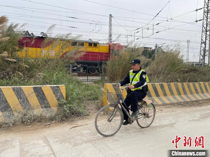 今年60歲的袁倫,是南寧鐵路公安局北海公安處欽州港站派出所的一名線路民警。2024年春運(yùn),臨近退休的袁倫依舊騎著他心愛(ài)的自行車,穿梭在鐵路沿線,站好他鐵警生涯中“最后一班春運(yùn)崗”。