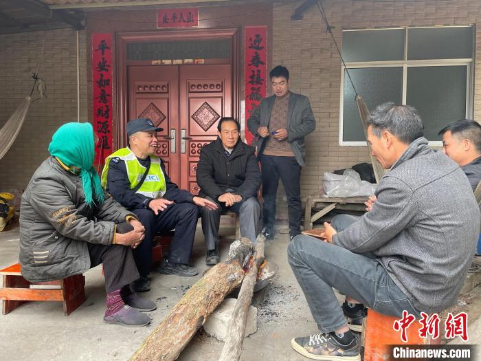 袁倫在與村民拉家常的同時(shí)開(kāi)展普法宣傳。黃巍 攝