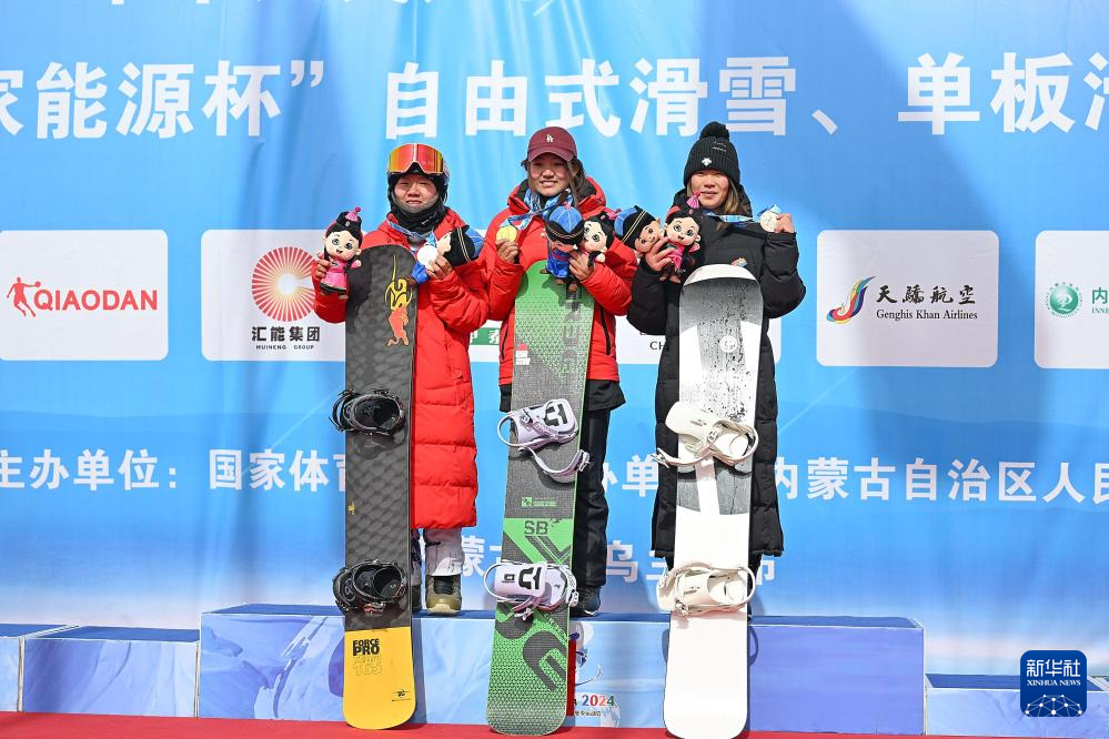 2月19日,在第十四屆全國冬季運(yùn)動(dòng)會(huì)單板滑雪青年組女子障礙追逐比賽中,西藏隊(duì)選手擁青拉姆、湖北隊(duì)選手楊禮妍和遼寧隊(duì)選手馮賀分獲前三名。新華社記者 李志鵬 攝