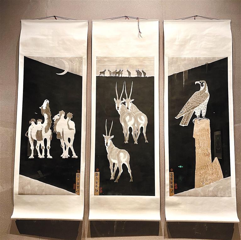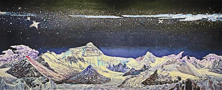 韓書(shū)力作品《喜馬拉雅八聯(lián)通景(三幅)》。記者 丹增平措 攝