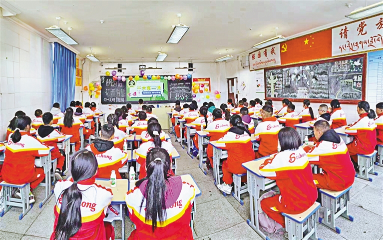 在林芝市第二小學(xué),學(xué)校布置了喜慶的龍年裝飾,教室文化墻裝點(diǎn)一新,老師們分發(fā)起糖果、牛奶。溫暖的“小驚喜”迅速調(diào)動(dòng)起學(xué)生返校的好心情;波密縣完全小學(xué)利用寒假對(duì)所有教室進(jìn)行了粉刷、維修,對(duì)學(xué)生食堂進(jìn)行了升級(jí)改造,干凈、整潔的校園,讓學(xué)生們格外激動(dòng)……“今天很開(kāi)心,見(jiàn)到了老師和同學(xué),也見(jiàn)到了更美麗的校園。新的學(xué)期,我要繼續(xù)做好班干部工作,取得更大的進(jìn)步?!绷种ナ械诙W(xué)學(xué)生索朗次仁信心滿滿地說(shuō)。