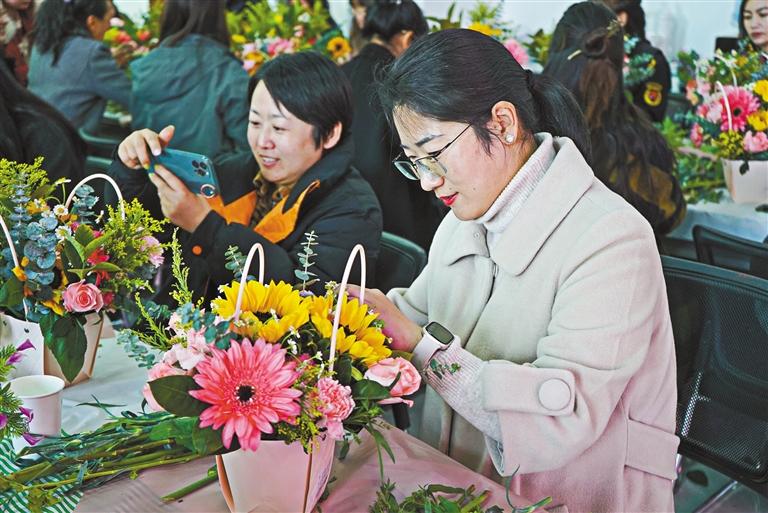 近日,拉薩市堆龍德慶區(qū)婦聯(lián)開展“巧手插花綻芳華·魅力巾幗展風采”花藝培訓特色課程。圖為婦女在制作花藝作品。 拉巴桑姆 攝