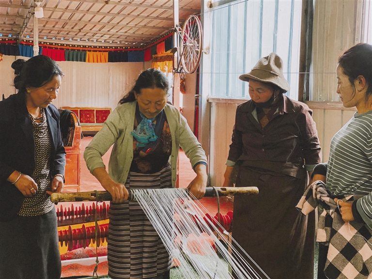 老師在指導工人紡織。圖由卓瑪提供