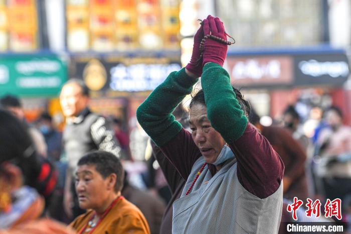 3月14日,西藏拉薩,信眾在大昭寺門口朝拜祈福。中新社記者 貢嘎來(lái)松 攝