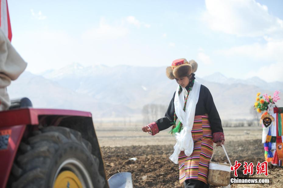 3月16日,西藏拉薩迎來一年一度盛大的傳統(tǒng)春耕儀式。當日是藏歷正月二十四日,按照藏歷傳統(tǒng),是西藏農(nóng)區(qū)開耕的日子。林周縣村民身著節(jié)日盛裝,家家戶戶端著自家的“切瑪”(象征五谷豐登)帶著青稞酒、酥油茶等物品聚在田間,互敬青稞酒,開始撒種,祈求全年風調(diào)雨順、五谷豐登。貢嘎來松 攝