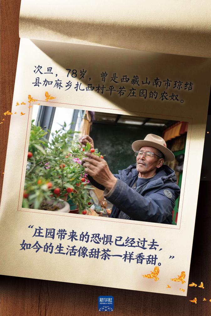 從昏暗羊圈到藏式二層小樓,次旦家的變化天翻地覆。“莊園帶來的恐懼已經(jīng)過去,現(xiàn)在兒女都長大成人,我有養(yǎng)老金、有醫(yī)保,沒有后顧之憂。如今我們的生活像甜茶一樣香甜?!贝蔚┱f。(參與采寫:旦增尼瑪曲珠)