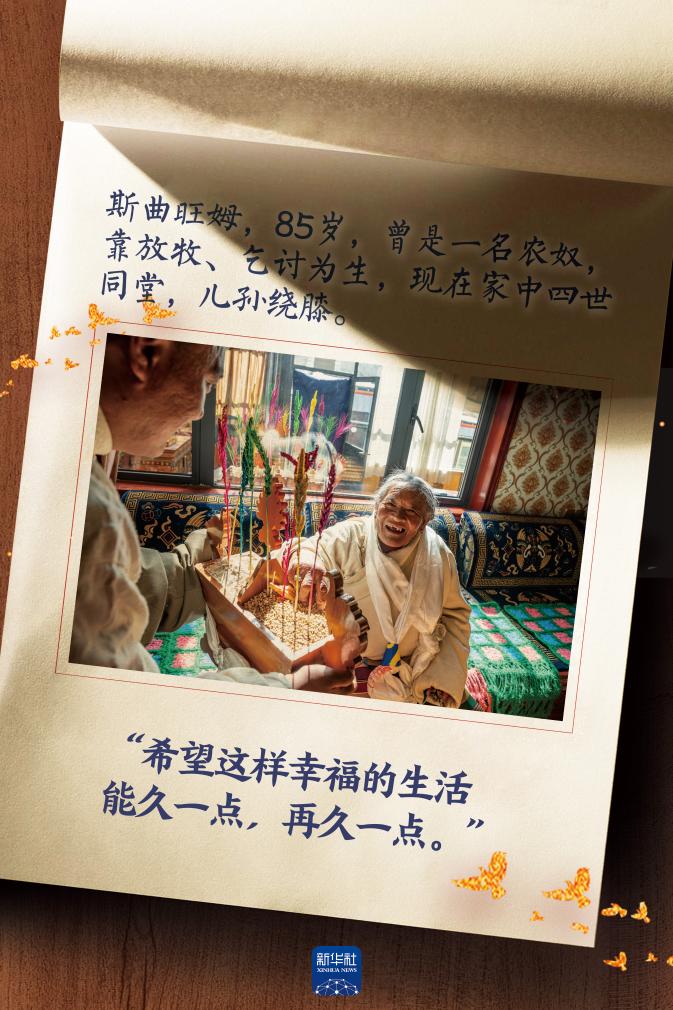 20世紀(jì)80年代,靠著國家的惠民政策,以及牲畜出欄積累的財(cái)富,斯曲旺姆家從土坯房搬進(jìn)石木結(jié)構(gòu)的新房。2019年,斯曲旺姆家再次更換住房,搬進(jìn)了鋼筋混凝土結(jié)構(gòu)的新房?!皼]想到這輩子還能住上這么好的房子,以前農(nóng)奴主的房子都不如我家?!彼f。