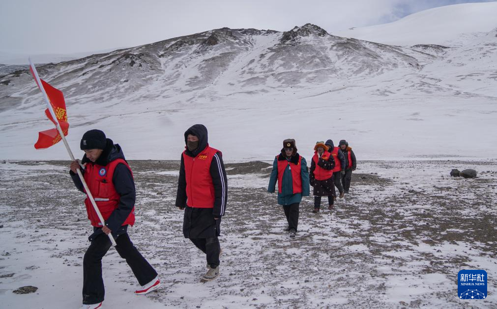 瑪曲鄉(xiāng)長(zhǎng)江源環(huán)保志愿隊(duì)在巡邏守護(hù)長(zhǎng)江源(2月2日攝)。新華社記者 晉美多吉 攝