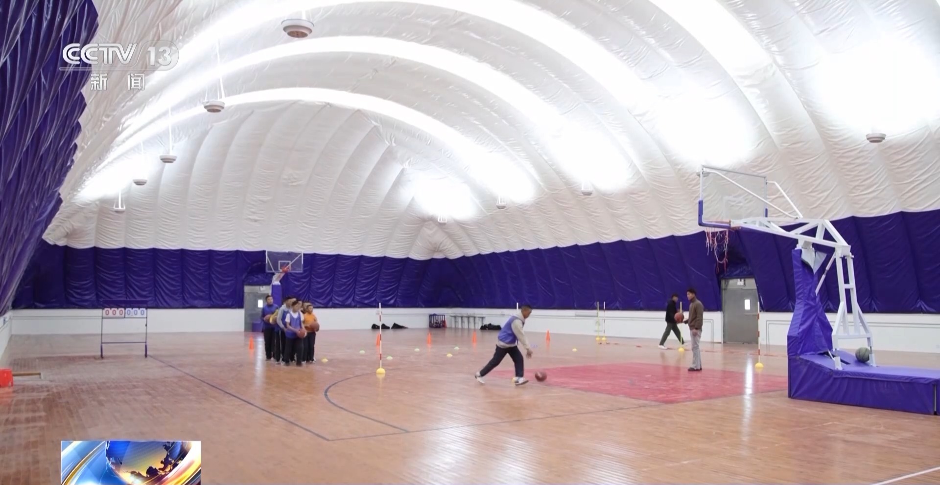 西藏那曲市聶榮縣國家能源集團(tuán)希望小學(xué),位于藏北草原深處,海拔4700米左右。學(xué)校里有1200名師生,孩子們十分喜愛籃球。但是因為高寒缺氧,一場球賽打30分鐘,孩子們就筋疲力盡了。為助力當(dāng)?shù)睾⒆訉?shí)現(xiàn)籃球夢,今年春天,在援藏資金的幫助下,學(xué)校有了藏北第一座加壓供氧的氣膜球館,孩子們可以在球場上盡情地奔跑。