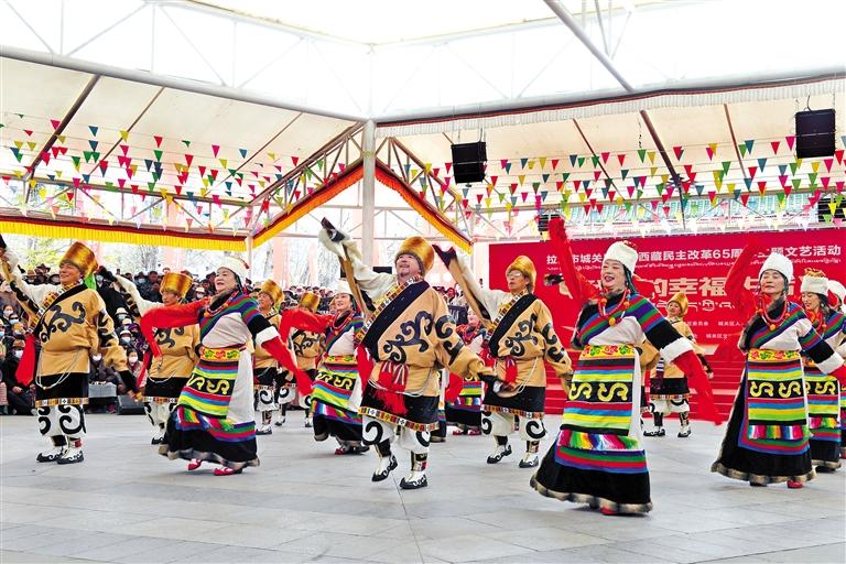 三月,柳枝吐芽、田野蘇醒。在一片生機盎然中,雪域高原上的各族人民,迎來了西藏百萬農(nóng)奴解放65周年。連日來,西藏各地各部門舉行豐富多彩的活動,回望光輝歷程,激揚奮進(jìn)力量。