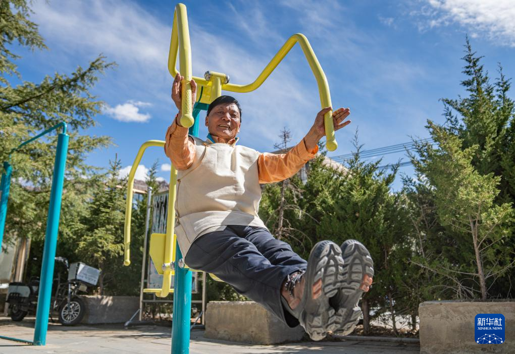 2024年3月28日 普次仁在小區(qū)內(nèi)鍛煉身體(3月23日攝)。新華社記者 丁增尼達 攝