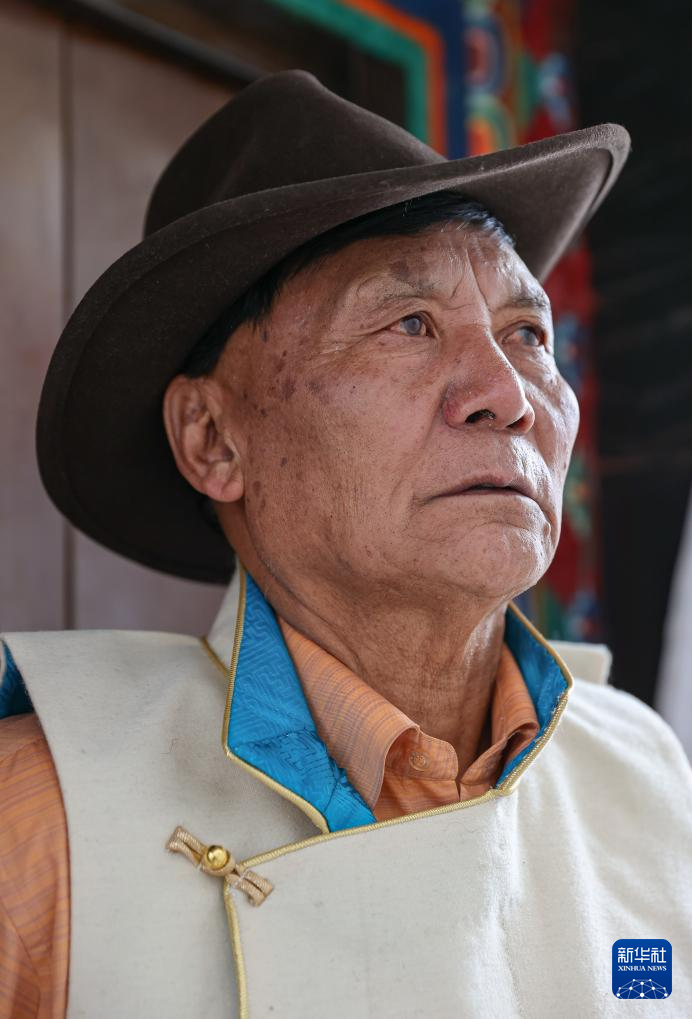 2024年3月28日 普次仁換上藏裝,準備前往西藏百萬農(nóng)奴解放紀念館義務講解(3月23日攝)。新華社記者 丁汀 攝
