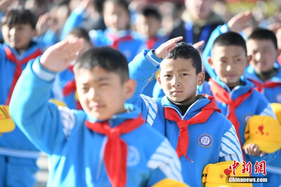 3月28日,西藏各族各界人士聚集在拉薩布達(dá)拉宮廣場,升國旗、唱國歌,參加西藏百萬農(nóng)奴解放65周年紀(jì)念活動。圖為升國旗儀上的學(xué)生代表。中新社記者 貢嘎來松 攝