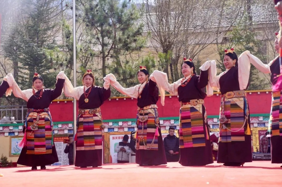 初春的通夏村,嫩柳吐新、彩旗飄飄,鮮艷的五星紅旗迎著風招展,人們盛裝而來,空氣中洋溢著節(jié)日的氛圍。在觀眾的熱烈掌聲中,《銘記歷史》《翻身農(nóng)奴把歌唱》《歡騰的熱巴》……一首首經(jīng)典的歌曲,一段段熱情四溢的舞蹈盡情展現(xiàn)了康巴兒女對黨的感激和幸福生活的歌頌。