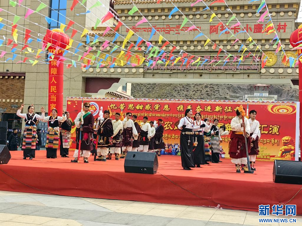 這是洛隆縣紀(jì)念西藏百萬農(nóng)奴解放65周年文藝演出現(xiàn)場(chǎng)(3月28日攝)。新華社發(fā)