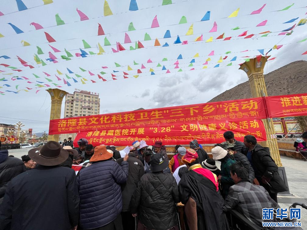 這是洛隆縣文化科技衛(wèi)生“三下鄉(xiāng)”活動(dòng)現(xiàn)場(chǎng)(3月28日攝)。新華社發(fā)