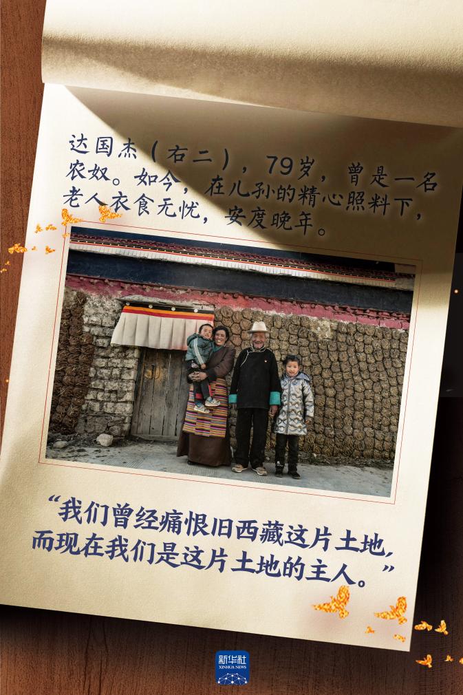 “民主改革后我才真正睡了一個(gè)踏實(shí)覺(jué),不再?zèng)]日沒(méi)夜地支差役,也不用挨農(nóng)奴主的皮鞭了?!蹦悄辏_(dá)國(guó)杰一家分得了50畝地、1頭牛、1匹馬和15只羊。“有了自己的土地,干再累的活都是開(kāi)心的。那一年我第一次吃糌粑可以吃到撐,真正體會(huì)到了做人的滋味。”