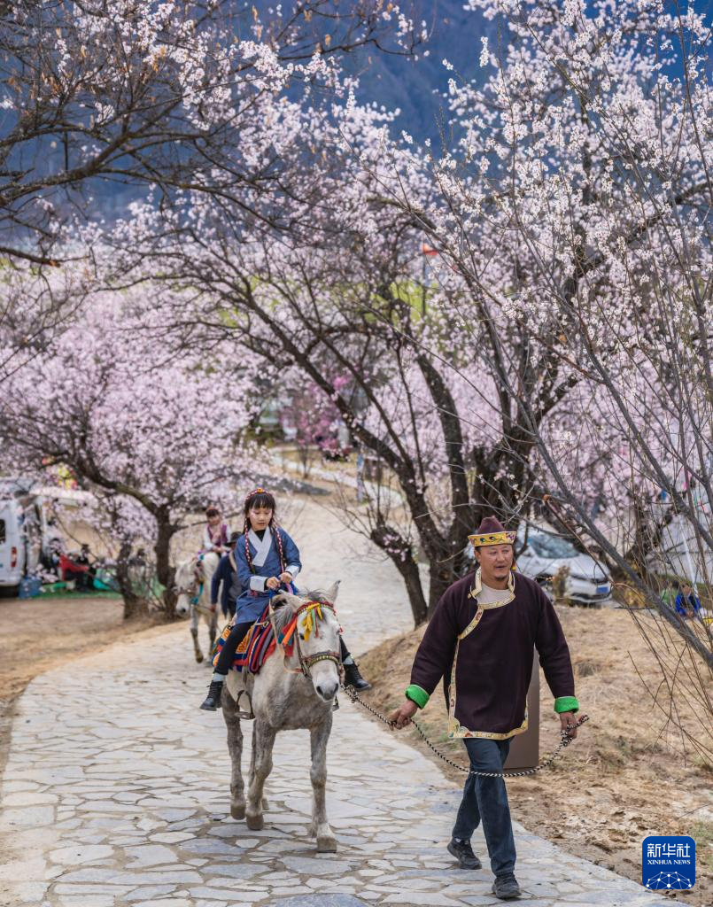 3月31日,游客在林芝市巴宜區(qū)嘎拉村體驗騎馬。新華社記者 孫非 攝