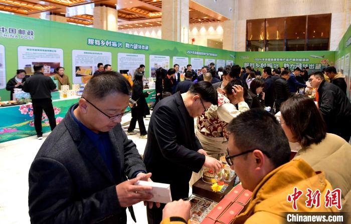 圖為高原農(nóng)特產(chǎn)品產(chǎn)銷對接活動現(xiàn)場,各省郵政公司有關(guān)負(fù)責(zé)人與企業(yè)對接。李林 攝