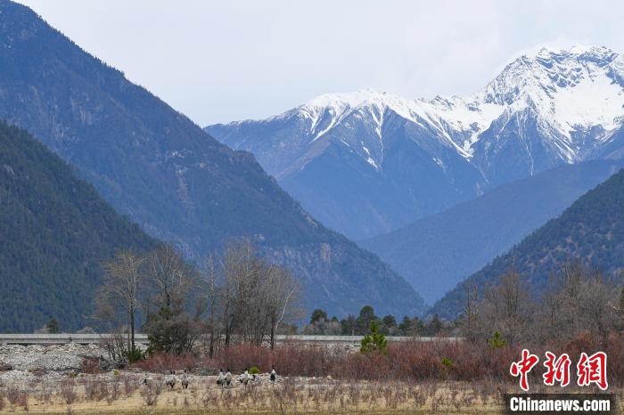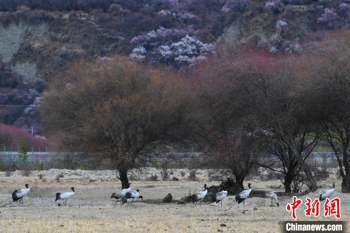 3月30日,在西藏林芝市巴宜區(qū)更章門巴民族鄉(xiāng)境內(nèi),黑頸鶴在村莊里、盛開的桃花前、雪山下翩翩起舞,形成一幅絕美的自然畫卷。黑頸鶴,被譽(yù)為“鳥類大熊貓”,是國家一級(jí)保護(hù)野生動(dòng)物,也是世界上唯一在高原地區(qū)生長和繁殖的鶴類。近年來,西藏不斷加大黑頸鶴生存環(huán)境保護(hù)力度。據(jù)2022年冬季越冬黑頸鶴種群數(shù)量調(diào)查顯示,在西藏越冬的黑頸鶴種群數(shù)量達(dá)11175只,種群數(shù)量持續(xù)增長,并在西藏全區(qū)均有分布,其瀕危等級(jí)也從“易?!苯禐椤敖!薄T诹种?,黑頸鶴在桃花與雪山間自由翱翔,展現(xiàn)了人與自然和諧共處的美好場(chǎng)景。