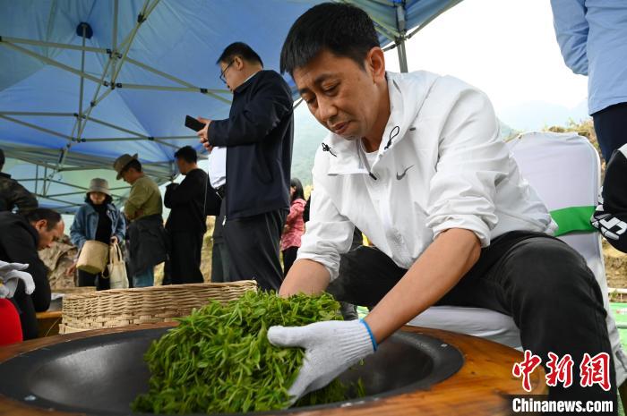 圖為制茶師將群眾體驗(yàn)采摘而來的茶青炒成茶。趙朗 攝