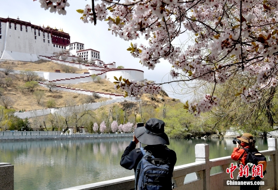 4月6日,西藏拉薩布達拉宮腳下春花綻放,與布達拉宮相互映襯。中新社記者 李林 攝
