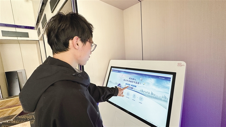 市民使用自助選號(hào)機(jī)選號(hào)。