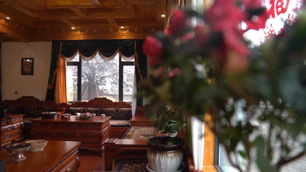 下午4點,林芝市波密縣傾多鎮(zhèn)古通村,遠(yuǎn)來的游客入住到村民洛松頓珠開辦的民宿。寬敞的客廳里,藏式家具整齊大氣,窗外古老的桃花樹隨風(fēng)散落著陣陣花雨。