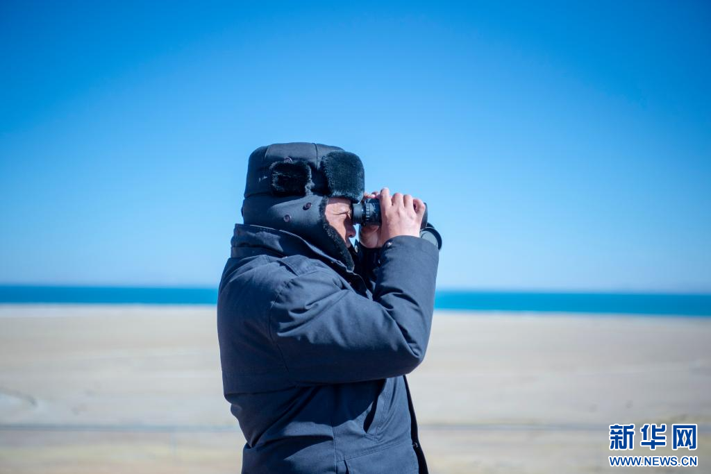 4月14日,野保員次成塔青在色林錯國家級自然保護(hù)區(qū)巡邏。新華網(wǎng) 旦增努布 攝