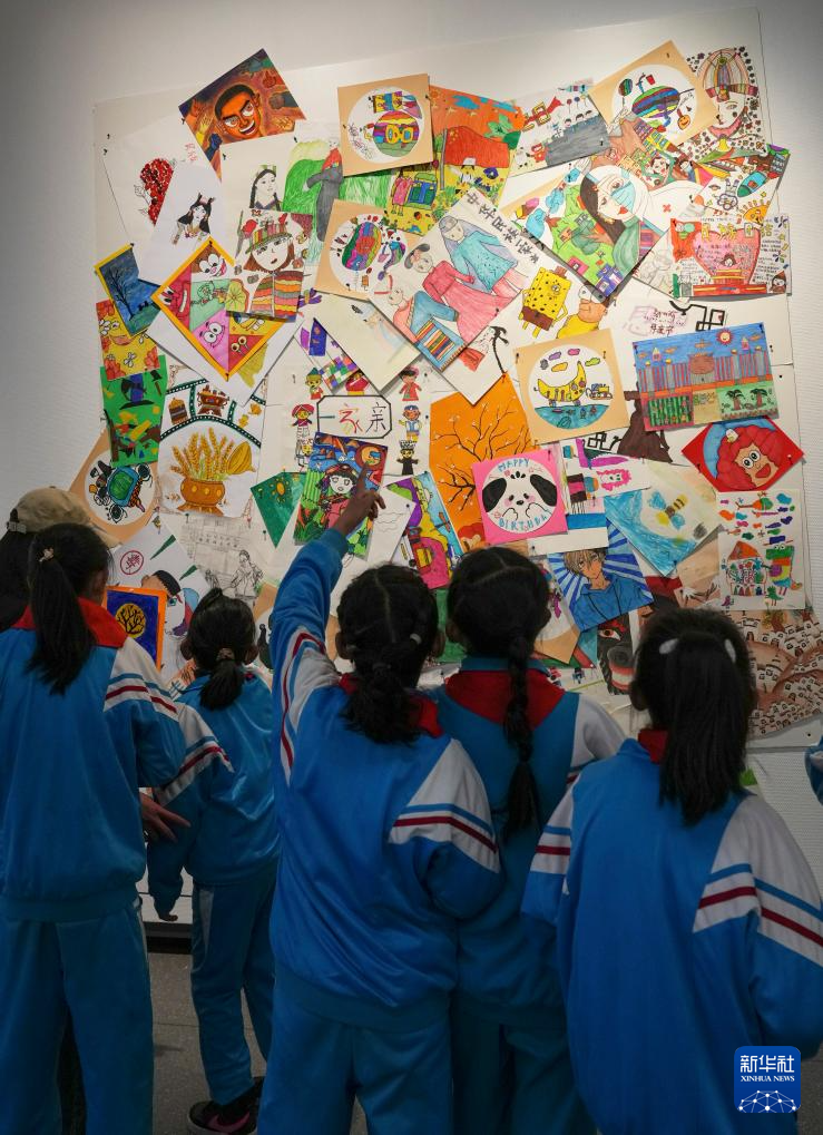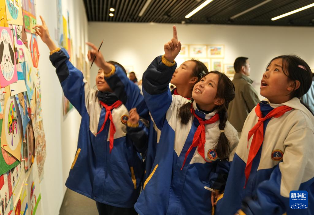 4月19日,拉薩市的小學(xué)生在參觀畫(huà)展。新華社記者 晉美多吉 攝