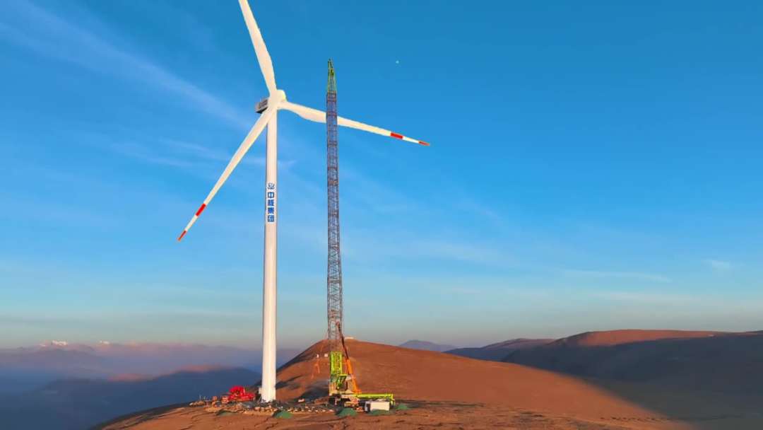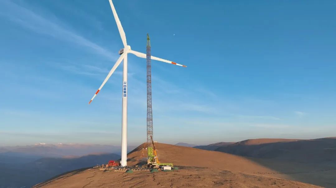 4月20日,在西藏自治區(qū)日喀則市薩迦縣的高原山地上,由中核匯能西藏公司投資、中核二二公司承建的中核集團首個在藏風電項目——中核薩迦30萬千瓦風光儲一體化項目風電場首臺風機吊裝完成。根據(jù)測算,該風電場區(qū)最高海拔達到5193米,是目前世界上在建海拔最高、單體容量最大的風電項目。
