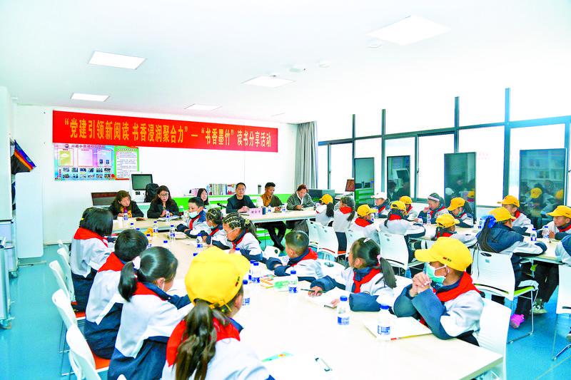 圖為拉薩市墨竹工卡縣委宣傳部在該縣南京實驗小學舉辦“黨建引領新閱讀 書香浸潤聚合力”——“書香墨竹”讀書分享活動。記者 格桑倫珠 攝