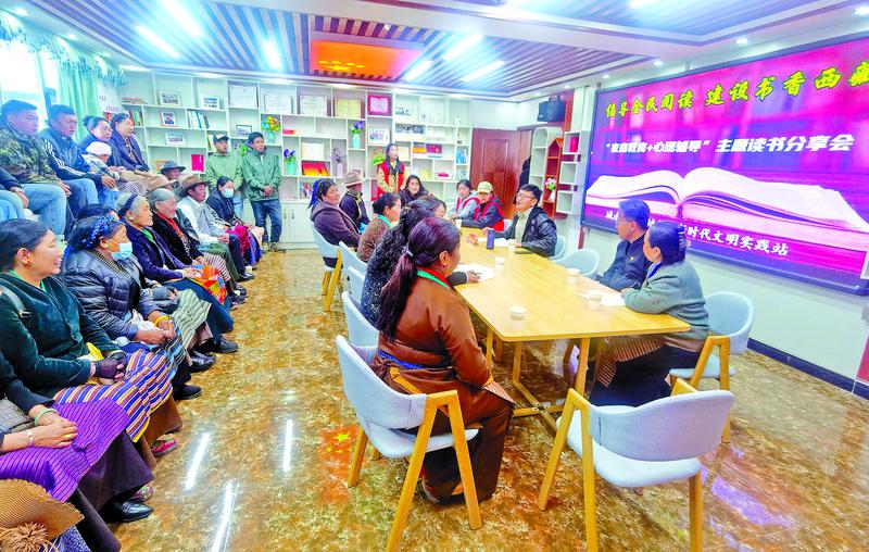圖為日喀則市吉培社區(qū)開展“家庭教育+心理輔導”主題讀書分享會現(xiàn)場。記者 楊子彥 攝