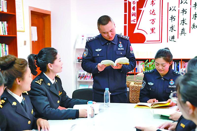 圖為亞東邊檢站和亞東海關聯(lián)合開展“書香邊境”主題讀書分享活動。記者 王莉 通訊員 許鵬飛 李錦輝 攝