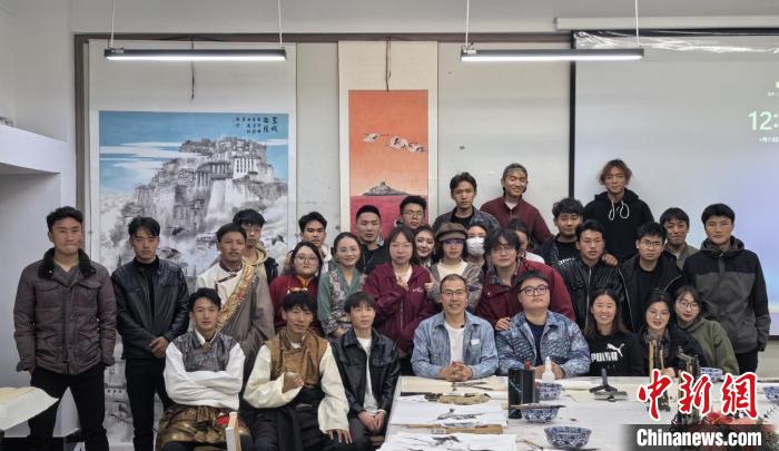 西藏大學藝術學院師生在《國畫寫意》課程落幕后合影留念。西藏大學藝術學院供圖