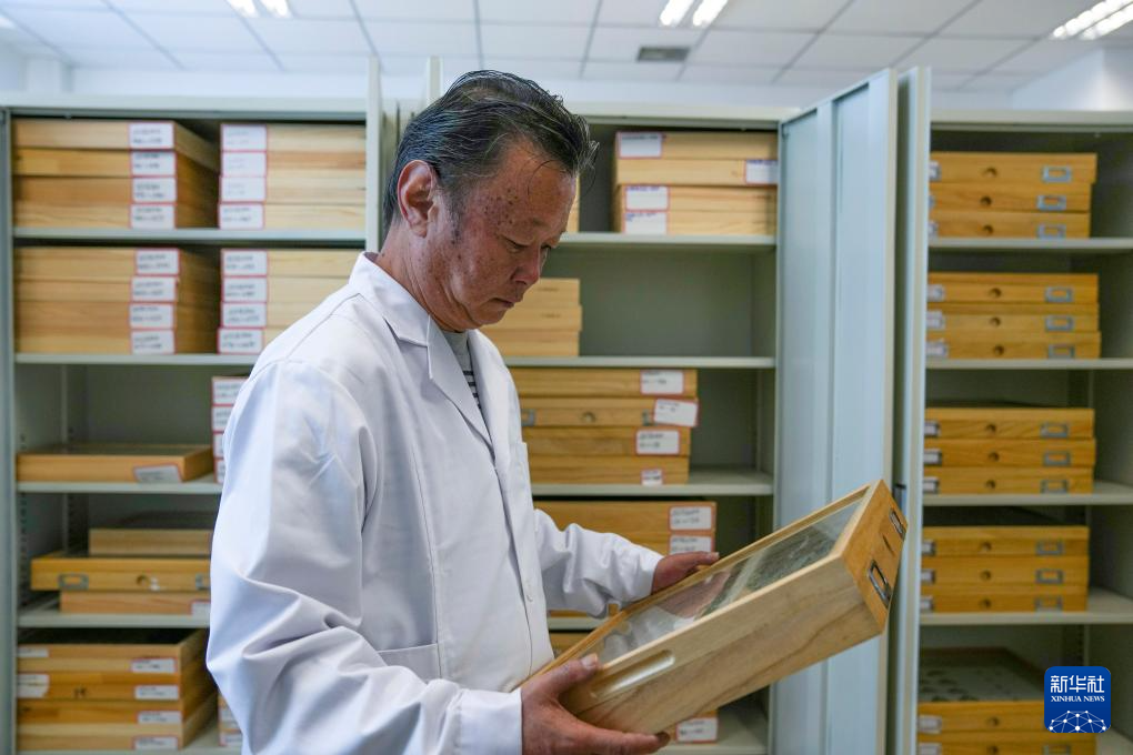 達娃在位于拉薩的西藏自治區(qū)高原生物研究所檢視昆蟲標本(4月22日攝)。新華社記者 晉美多吉 攝