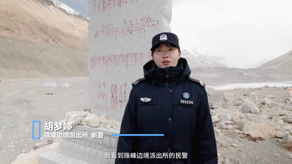 “珠穆朗瑪峰世界最高峰對于我來說不再是以前課本上那遙不可及的存在,而是我已經抵達并駐守的地方,我也如愿把我最美好的青春再次獻給了祖國,”新警胡夢婷堅定地說道。