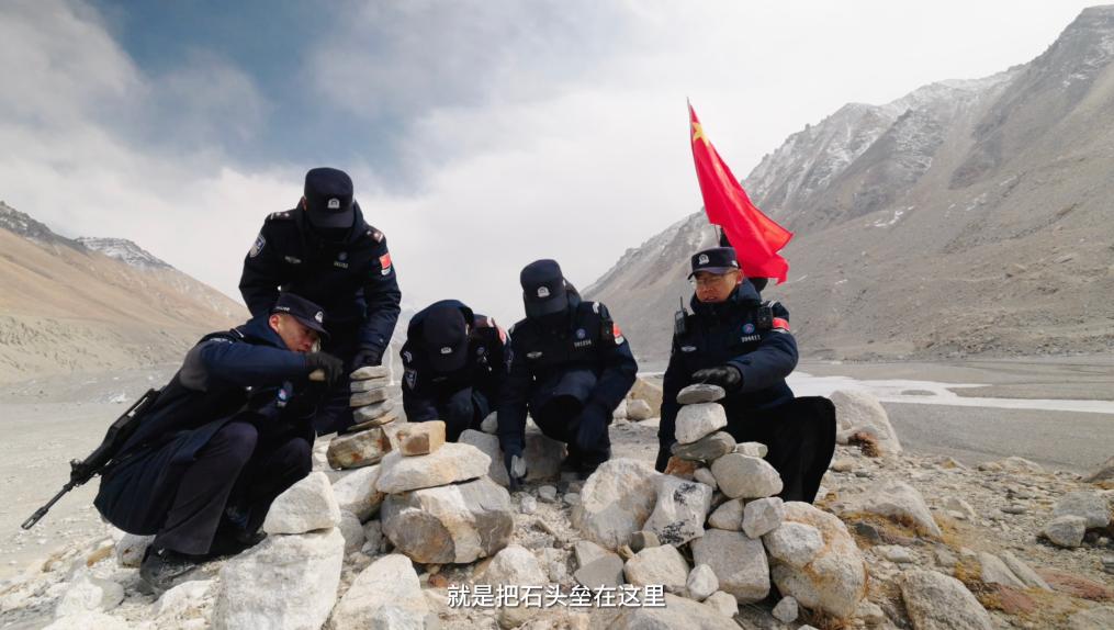 又經過4個小時的跋涉,巡邏隊最終抵達本次巡邏的終點。每次到巡邏任務結束,都會在這里留下一個小石頭,并許下一個愿望,祝祖國繁榮昌盛,也祝自己心想事成。