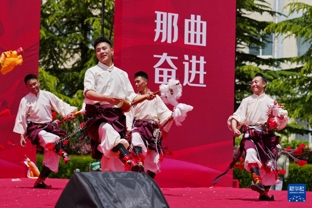 5月12日,在西藏職業(yè)技術學院職業(yè)教育活動周啟動儀式暨比如縣非物質(zhì)文化遺產(chǎn)進校園活動上,比如縣民族藝術團的演職人員在表演節(jié)目。新華社發(fā)(趙大志攝)