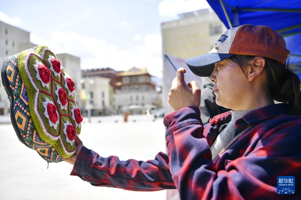 5月12日,在西藏職業(yè)技術學院職業(yè)教育活動周啟動儀式暨比如縣非物質(zhì)文化遺產(chǎn)進校園活動上,一名消費者在挑選比如縣的特色旅游產(chǎn)品。新華社記者 張汝鋒 攝