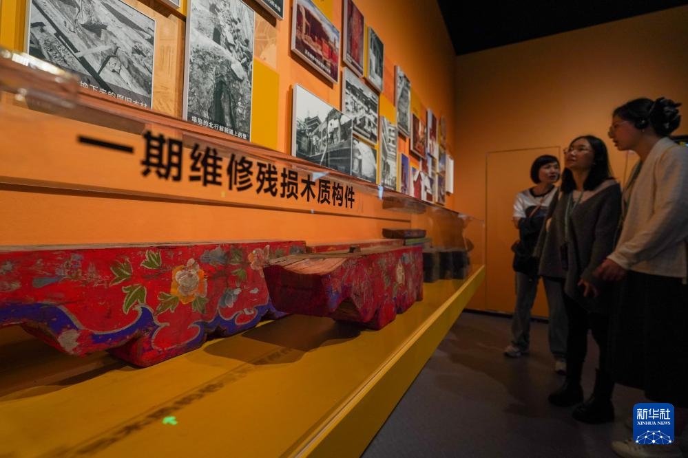5月11日,觀眾在展出現(xiàn)場(chǎng)參觀布達(dá)拉宮一期維修殘損木質(zhì)構(gòu)件。新華社記者 李博 攝